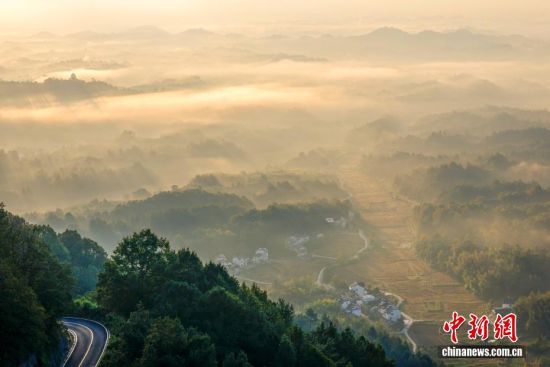 安徽休寧:秋日晨霧勾勒山川朦朧美